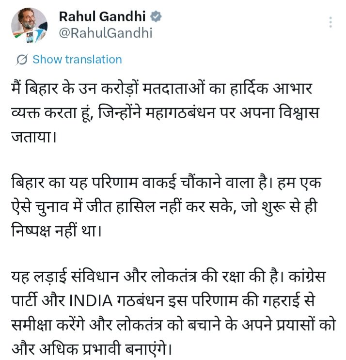 (2):- तेजस्वी यादव :- राहुल जी हम हार रहे है.. 😕