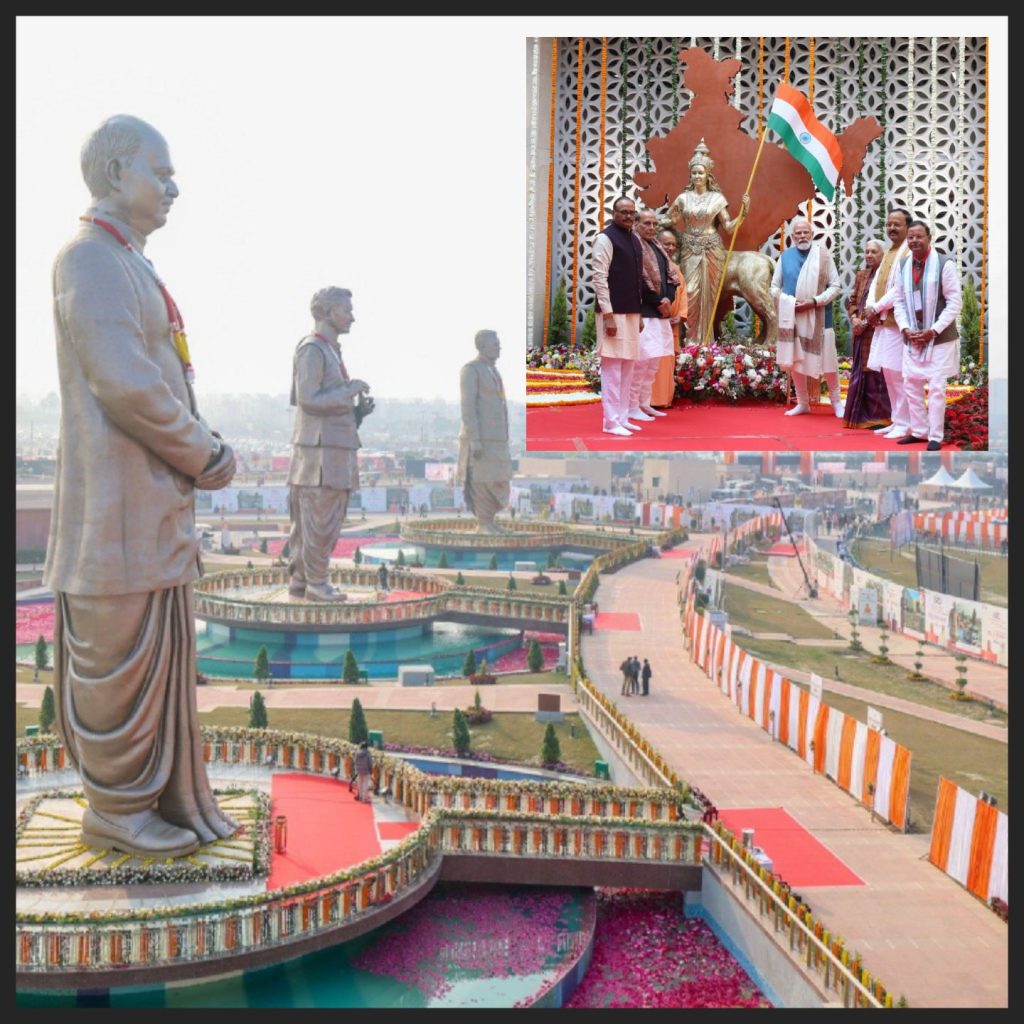 25/12/25 लखनऊ:- उत्तर प्रदेश की राजधानी लखनऊ के राष्ट्र प्रेरणा स्थल में डॉक्टर श्यामा प्रसाद मुखर्जी जी, पंडित दीनदयाल उपाध्याय जी और अटल बिहारी वाजपेयी जी की विशाल प्रतिमाएं लगाई गईं हैं जिसका प्रधानमंत्री मोदी ने आज पूर्व प्रधानमंत्री व भारत रत्न से सम्मानित सवर्गीय अटल बिहारी वाजपेयी की जयंती के अवसर पर लखनऊ में ‘राष्ट्र प्रेरणा स्थल’ का उद्घाटन किया।