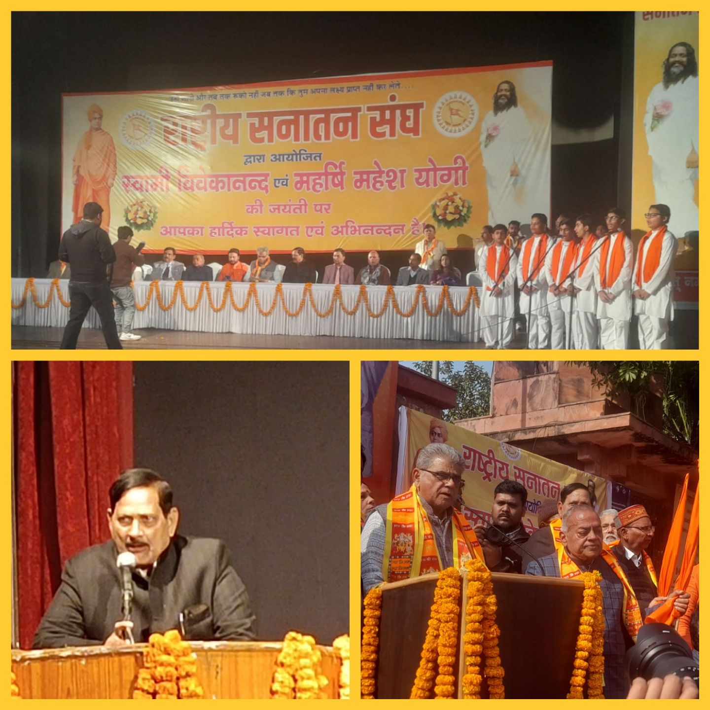 12/1/26 लखनऊ:- राष्ट्रीय सनातन संघ के बैनर तले स्वामी विवेकानंद एवं महर्षि महेश योगी की जयंती पर संगीत नाटक अकादमी में भव्य कार्यक्रम आयोजित किया गया। इसके साथ पदयात्रा एवं सगोष्ठी का आयोजन किया गया।