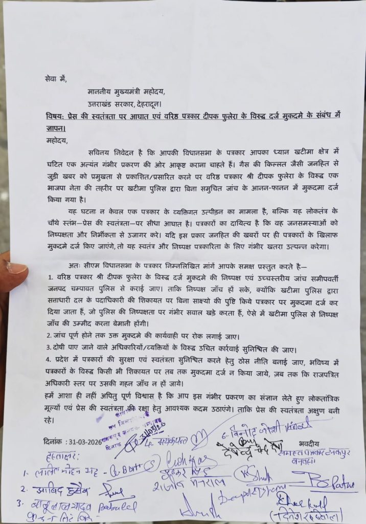 01/04/26 Uttarakhand:- सिस्टम हुआ बेनकाब तो बौखलाया प्रशासन, गैस किल्लत की खबर छापने पर पत्रकार पर ठोका मुकदमा.